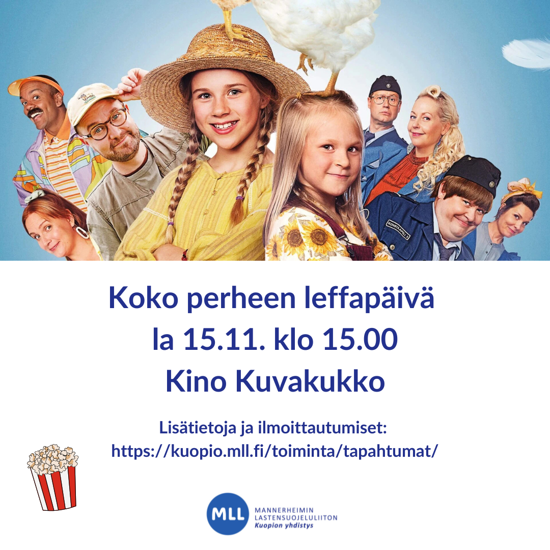 MLL Kuopion yhdistys järjestää maksuttoman leffapäivän la 15.11. klo 15 Kino Kuvakukossa.